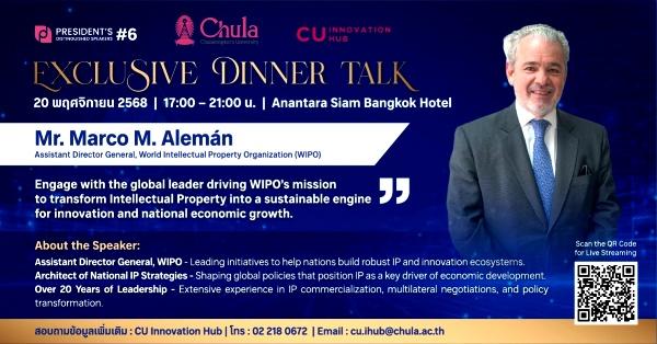 จุฬาฯ ชวนเปิดมุมมองผู้นำระดับโลก ด้านนวัตกรรมและทรัพย์สินทางปัญญา ในงาน “President's Distinguished Speaker #6”