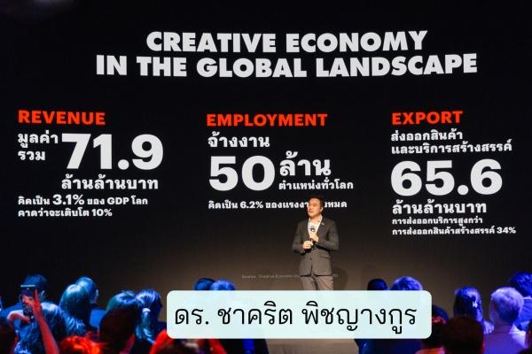 อุตสาหกรรมสร้างสรรค์ไทย (GVA) มูลค่า 1.44 ล้านล้านบาท คิดเป็นสัดส่วน 8.01% ของผลิตภัณฑ์มวลรวมประเทศ (GDP) สร้างมูลค่าการส่งออกได้ 3.91 แสนล้านบาท สร้างตำแหน่งงานให้กับผู้ประกอบอาชีพนักสร้างสรรค์ในประเทศ 9.8 แสนคนในไทย ทั้งเป็นอุตสาหกรรมที่มีความสามารถการฟื้นตัวได้เร็วและสูงกว่าภาพรวมเศรษฐกิจเมื่อเกิดวิกฤต