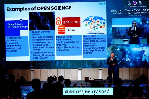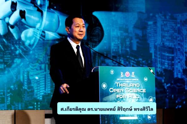 ศ.เกียรติคุณ ดร.นายแพทย์ สิริฤกษ์ ทรงศิวิไล ประธานกรรมการส่งเสริม วิทยาศาสตร์ วิจัยและนวัตกรรม (กสว.)กล่าวว่า Open Science คือการเปลี่ยนวัฒนธรรมการสร้างและใช้ความรู้ของทั้งสังคม ให้ความรู้ที่เกิดจากภาษีกลับคืนสู่ประชาชนในรูปของโอกาสใหม่ทางเศรษฐกิจ คุณภาพชีวิตของสังคม และการใช้ ทรัพยากรอย่างยั่งยืน