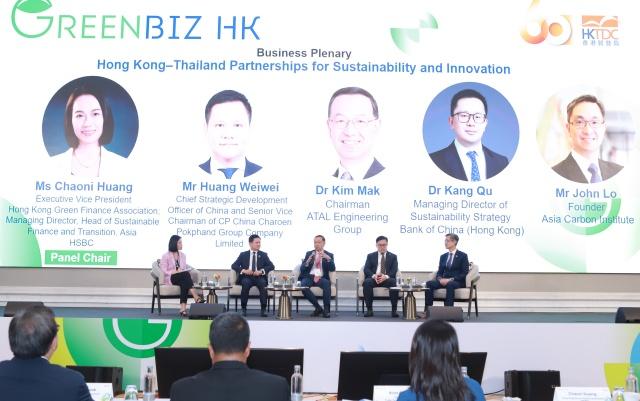 ดร. คิม มัก ประธานบริษัท อนาล็อก โฮลดิ้งส์ จำกัดกล่าวถึงการประยุกต์ใช้เทคโนโลยีสีเขียว อาคารสีเขียว และโซลูชันเมืองอัจฉริยะล่าสุด จอห์น โล ผู้ก่อตั้งสถาบันเอเชียคาร์บอน ได้แบ่งปันข้อมูลเชิงลึกที่เป็นประโยชน์เกี่ยวกับการลดการปล่อยคาร์บอนและกลยุทธ์ ESG หวง เหวยเหว่ย ประธานเจ้าหน้าที่ฝ่ายพัฒนากลยุทธ์ประจำประเทศจีน และรองประธานอาวุโสของซีพี ไชน่า ในเครือเจริญโภคภัณฑ์ จากประเทศไทย ได้นำเสนอประสบการณ์ของบริษัทในด้านพลังงานหมุนเวียนและเทคโนโลยีด้านสิ่งแวดล้อม ชี้ให้เห็นว่าแพลตฟอร์มด้านเงินทุน การบริการระดับมืออาชีพ และการเชื่อมต่อระดับโลกของฮ่องกงสนับสนุนวิสาหกิจไทยในการพัฒนาโมเดลเศรษฐกิจชีวภาพหมุนเวียนสีเขียว (Bio-Circular-Green: BCG) และขยายธุรกิจไปต่างประเทศได้ การประชุมครั้งนี้ เน้นย้ำถึงศักยภาพในการร่วมมือกันอย่างลึกซึ้งยิ่งขึ้นในด้านการเงินสีเขียว เทคโนโลยีที่ยั่งยืน และนวัตกรรมเมืองในอนาคต