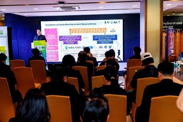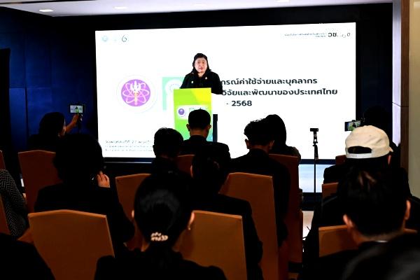 การแถลงข่าวผลพยากรณ์ค่าใช้จ่ายและบุคลากรด้านการวิจัยและพัฒนาของประเทศไทย ปี 2567 - 2568 เพื่อประกาศการคาดการณ์ค่าใช้จ่ายและบุคลากรวิจัยของประเทศ ให้หน่วยงานรัฐ เอกชน และผู้กำหนดนโยบายใช้เป็นข้อมูลวางแผนพัฒนาเทคโนโลยีและเศรษฐกิจฐานนวัตกรรม สะท้อนแนวโน้มการลงทุนวิจัยอย่างโปร่งใส ชี้ประเด็นท้าทาย – โอกาสของประเทศ และเปิดเวทีแลกเปลี่ยนแนวนโยบายการลงทุนวิจัยระหว่างหน่วยงานที่เกี่ยวข้อง.