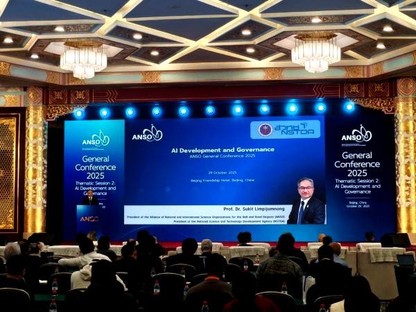 การประชุมใหญ่ประจำปี ANSO General Conference 2025 จัดระหว่างวันที่ 28-29 ตุลาคม 2568 ณ กรุงปักกิ่ง สาธารณรัฐประชาชนจีน มีผู้เข้าร่วมประชุมกว่า 300 คน จากกว่า 30 ประเทศทั่วโลก เป็นเวทีการสื่อสาร แลกเปลี่ยนความคิด และแบ่งปันแนวปฏิบัติที่ดีที่สุดในความร่วมมือระหว่างประเทศ เพื่ออนาคตที่ยั่งยืนของมนุษยชาติ ขับเคลื่อนความร่วมมือทางวิทยาศาสตร์และเทคโนโลยีสำหรับ UN SDGs การประชุมครั้งนี้ นอกจาก สวทช. สำนักงานคณะกรรมการส่งเสริมวิทยาศาสตร์ วิจัยและนวัตกรรม (สกสว.) และหน่วยบริหารและจัดการทุนด้านการพัฒนากำลังคน และทุนด้านการพัฒนาสถาบันอุดมศึกษา การวิจัยและการสร้างนวัตกรรม (บพค.) ได้เข้าร่วมประชุมด้วย