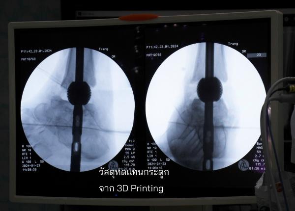 ข้อเท้าเสื่อมเป็นปัญหาสุขภาพที่ซับซ้อน ส่งผลกระทบต่อคุณภาพชีวิตของผู้ป่วยอย่างมาก สาเหตุสำคัญจากอุบัติเหตุ โรคเบาหวาน และ การติดเชื้อในข้อ รวมถึงภาวะโรคเรื้อรังต่าง ๆ ที่ทำลาย หรือทำให้สูญเสียเนื้อกระดูกในข้อเท้าอย่างรุนแรง ผู้ป่วยต้องเผชิญความเจ็บปวด เดินลำบาก เป็นอุปสรรคการใช้ชีวิตประจำวัน ปัจจุบันการผ่าตัดกำจัดกระดูกที่เสียหาย ใช้ bone graft ทดแทนโพรงกระดูกที่สูญเสียไป แต่เต็มไปด้วยข้อจำกัด วัสดุแบบเดิม ไม่สามารถทำเฉพาะบุคคล ต้องปรับแต่งด้วยมือ ให้เข้ากับความบกพร่องของกระดูกแต่ละราย เกิดความเสี่ยงการยึดติดที่ไม่เหมาะสม กระทบต่อความมั่นคงของกระดูกในระยะยาว การใช้กระดูกบริจาค (allograft) ก็มีข้อจำกัดเช่น ความเสี่ยงในการถ่ายทอดโรค การตอบสนองทางภูมิคุ้มกัน และข้อจำกัดด้านปริมาณ ซึ่งทำให้ผู้ป่วยบางรายต้องรับการผ่าตัดซ้ำ อาจนำไปสู่การสูญเสียอวัยวะถาวร