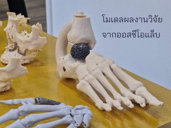มหาวิทยาลัยเทคโนโลยีพระจอมเกล้าธนบุรี (มจธ.) เปิดตัวนวัตกรรมวัสดุทดแทนกระดูกพรุนพิมพ์ด้วยเทคโนโลยีสามมิติ จากการออกแบบโครงสร้างวัสดุพรุนจากกระบวนการพิมพ์สามมิติ เพิ่มคุณสมบัติเชิงกลและเชิงชีวภาพสำหรับเป็นวัสดุทดแทนกระดูก พัฒนาระบบวางแผนการผ่าตัดแบบดิจิทัลและกระดูกเทียมเฉพาะบุคคล สำหรับศัลยกรรมกระดูกและใบหน้า ด้วยเทคโนโลยีการพิมพ์สามมิติและปัญญาประดิษฐ์ (Artificial Intelligence: AI) พัฒนาโดยทีมวิจัย มีรศ. ดร.พชรพิชญ์ พรหมอุปถัมภ์ อาจารย์ภาควิชาวิศวกรรมเครื่องกล คณะวิศวกรรมศาสตร์ มหาวิทยาลัยเทคโนโลยีพระจอมเกล้าธนบุรี (มจธ.) และ ผู้บริหารระดับสูงด้านเทคโนโลยีและนวัตกรรม (Chief Technology Officer : CTO) บริษัท ออสซีโอแล็บส์ จำกัด ธุรกิจที่แยกตัว (Spin-off) ของ มจธ. เป็นหัวหน้าโครงการฯ เป็นการบุกเบิกในวงการศัลยกรรมกระดูก นวัตกรรม เพื่อแก้ไขข้อจำกัดการรักษาแบบดั้งเดิม โดยเฉพาะปัญหาการติดเชื้อซ้ำสูง ช่วยให้กระดูกของผู้ป่วยยึดติดกันได้ดี มีความแม่นยำทางกายวิภาคของวัสดุทดแทนกระดูกที่ใช้กันทั่วไปจากเดิมที่ใช้ กระดูกบริจาคหรือซีเมนต์ทางการแพทย์