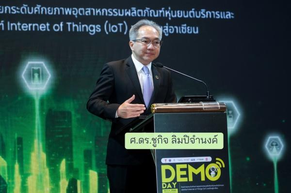 สำนักงานพัฒนาวิทยาศาสตร์และเทคโนโลยีแห่งชาติ (สวทช.) กระทรวงการอุดมศึกษา วิทยาศาสตร์ วิจัยและนวัตกรรม (อว.) ร่วมกับ สำนักงานคณะกรรมการกิจการกระจายเสียง กิจการโทรทัศน์ และกิจการโทรคมนาคมแห่งชาติ (กสทช.) จัด Demo Day โครงการยกระดับศักยภาพอุตสาหกรรมผลิตภัณฑ์หุ่นยนต์บริการและผลิตภัณฑ์ IoT ของไทยสู่อาเซียน ที่ห้องแกรนอลรูม โรงแรมแมนดาริน กรุงเทพฯ เมื่อวันที่ 15 ตุลาคม 2568 โดย ศ. ดร.ชูกิจ ลิมปิจำนงค์ ผอ.สำนักงานพัฒนาวิทยาศาสตร์และเทคโนโลยีแห่งชาติ (สวทช.) เป็นประธานเปิดงาน