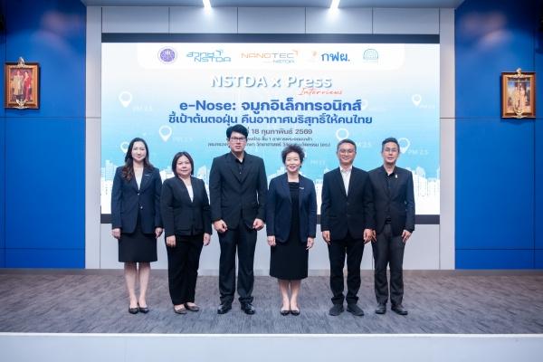 ดร.ภญ.อุรชา รักษ์ตานนท์ชัย ผอ.ศูนย์นาโนเทคโนโลยีแห่งชาติ (นาโนเทค) สวทช.นาโนเทค สำนักงานพัฒนาวิทยาศาสตร์และเทคโนโลยีแห่งชาติ (สวทช.) เปิดเผยเมื่อวันที่ 18 กุมภาพันธ์ 2569 ถึงการใช้นวัตกรรมระดับนาโนสืบหาแหล่งต้นตอฝุ่น PM2.5 แก้ปัญหาที่ต้นเหตุ ด้วยเทคโนโลยี e-Nose (จมูกอิเล็กทรอนิกส์) เพื่อแก้ปัญหามลพิษทางอากาศอย่างแม่นยำและยั่งยืน ด้วยโครงการต้นแบบการกระจายเซนเซอร์ 100 เครื่องในพื้นที่วิกฤต