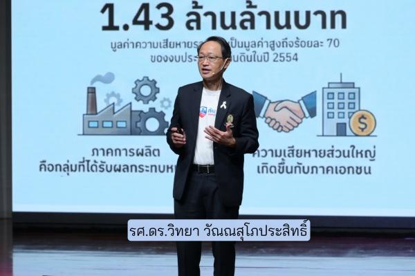 รศ.ดร.วิทยากล่าวอีกว่าประเทศไทย กำลังเผชิญกับสภาพอากาศที่เปลี่ยนแปลงอย่างรุนแรง ทั้งจากน้ำเหนือ น้ำทะเลหนุน สภาวะฝนสุดขั้ว และฝนแช่ เช่น ที่หาดใหญ่ ตกลงมาในพื้นที่เดียวภายในเวลาเพียง 1 สัปดาห์ ปริมาณฝนถึง 80% ของฝนทั้งปี น้ำท่วมฉับพลันอย่างไม่เคยเกิดขึ้นมาก่อน ส่งผลกระทบเป็นวงกว้าง ทั้งมิติเศรษฐกิจ คุณภาพชีวิตของประชาชน มูลค่าความสูญเสียและเสียหายของมหาอุทกภัยปี 2554 สูงถึง 1.43 ล้านล้านบาท คิดเป็น 70% ของงบประมาณแผ่นดิน ผลกระทบกว่า 90% เกิดขึ้นกับภาคเอกชน ทั้งความเสียหายและการสูญเสียโอกาสทางธุรกิจ