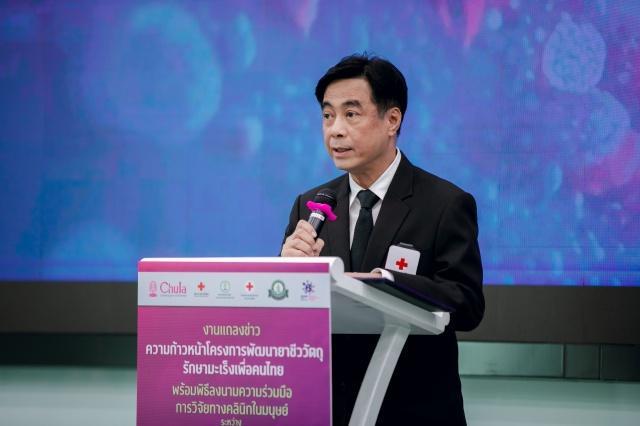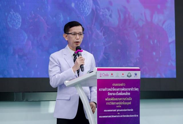 รศ.ดร.นพ.จิรุตม์ ศรีรัตนบัลล์ คณบดี คณะแพทยศาสตร์ จุฬาลงกรณ์มหาวิทยาลัย ผอ.โรงพยาบาลจุฬาลงกรณ์ สภากาชาดไทย กล่าวในการแถลงความก้าวหน้าโครงการพัฒนายาชีววัตถุรักษามะเร็งเพื่อคนไทย พร้อมกับการลงนามความร่วมมือด้านการวิจัยทางคลินิกในมนุษย์ ระหว่างคณะแพทยศาสตร์ จุฬาฯ กับ คณะแพทยศาสตร์วชิรพยาบาล มหาวิทยาลัยนวมินทราธิราช ที่โรงพยาบาลจุฬาลงกรณ์ สภากาชาดไทย เมื่อวันที่ 20 เมษายน 2569 โดยระบุว่าโครงการนี้คือความร่วมมือเพื่อลดช่องว่างระหว่างศักยภาพการรักษาและโอกาสการเข้าถึงยา โดยผลักดันงานวิจัยจากมหาวิทยาลัยสู่การใช้จริง เพื่อเสริมศักยภาพด้านยาชีววัตถุของประเทศในระยะยาว